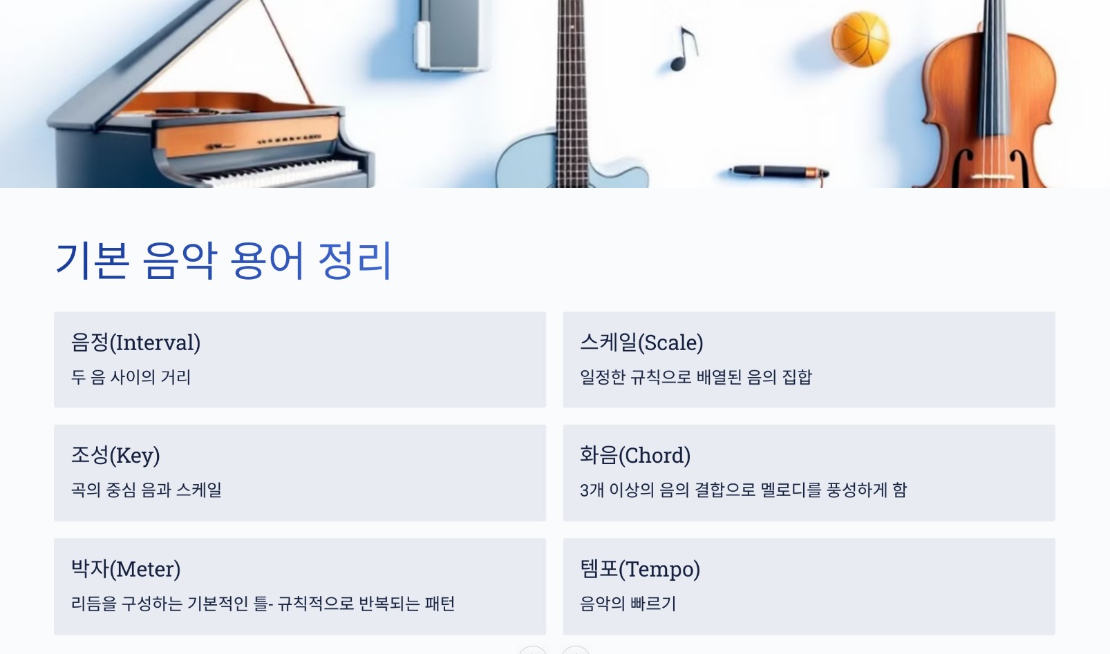 - 직접 연주하며 익히기 - 피아노, 기타 등 악기를 활용하면 더 쉽게 이해할 수 있습니다.