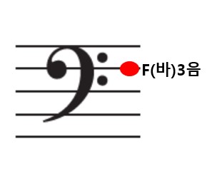 | 낮은음자리표 | 바(F) | 넷째줄 | 첼로, 베이스, 남성파트 등 |