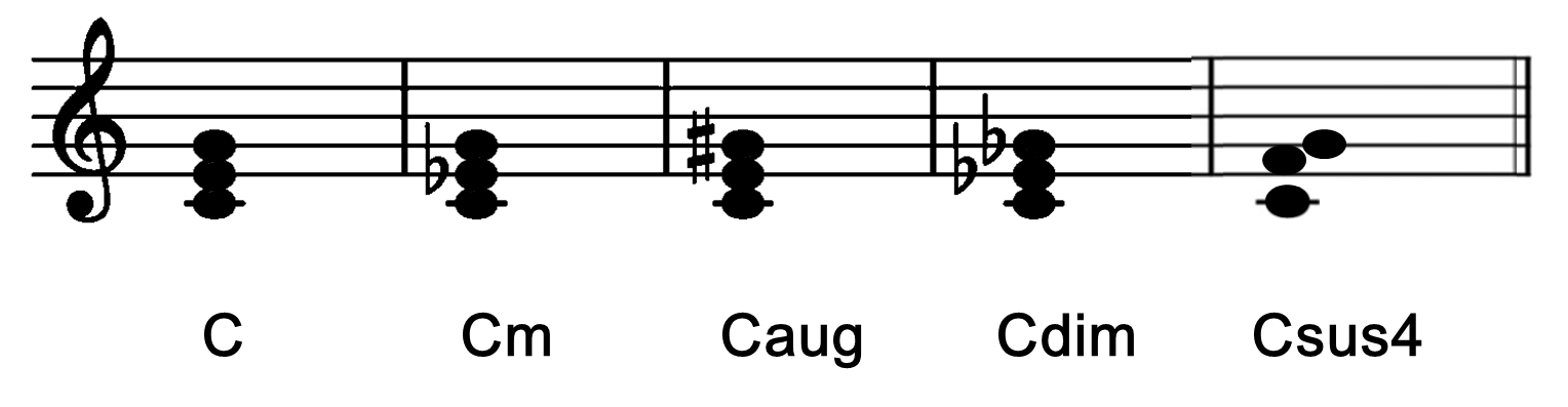 구성: 근음 + 완전4도 + 완전5도 (또는 근음 + 장2도 + 완전5도)